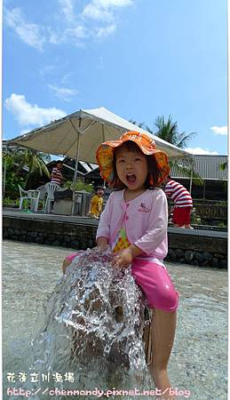 不知道是不是想睡覺,連上次玩得開心的水柱都是我半強迫抱她上去坐